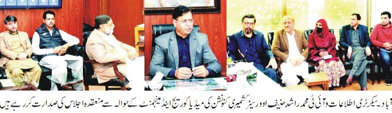 مظفرآباد(پی آئی ڈی/محاسب نیوز) سیکرٹری اطلاعات و آئی ٹی محمد راشد حنیف کی زیر صدارت اوورسیز کشمیری کنونشن کی میڈیا کوریج اینڈ مینجمنٹ کے حوالہ سے اجلاس منعقد ہوا۔ اجلاس میں معاون خصوصی ہمراہ وزیراعظم سید عزادار حسین کاظمی، ناظم تعلقات عامہ محمد بشیر مرزا، ڈپٹی ڈائریکٹر اطلاعات محترمہ قراہ العین، آفیسران محکمہ تعلقات عامہ محمد سہیل خان، سید آصف حسین نقوی، راجہ عبدالباسط خان، خواجہ محمد حنیف اور ساجد نذیر نے شرکت کی۔ اجلاس میں فروری کو مظفرآباد میں ہونے والے اوورسیز کشمیریز کنونشن کی میڈیا کوریج کے انتظامات کا جائزہ لیا گیا۔ اس موقع پر گفتگو کرتے ہوئے سیکرٹری اطلاعات و آئی ٹی محمد راشد حنیف نے کہا کہ اس تاریخی ایونٹ کی بھرپور میڈیا کوریج کو یقینی بنایا جائے۔ الیکٹرانک، پرنٹ اور سوشل میڈیا پر ایونٹ کی تشہیر کے لیے محکمہ اطلاعات اقدمات کرے۔ انہوں نے کہا کہ یہ ایک تاریخی ایونٹ ہے جس سے آزادکشمیر میں سرمایہ کاری کے مواقع پیدا ہونگے ہم سب کی ذمہ داری ہے کہ اس ایونٹ کو کامیاب بنائیں۔ معاون خصوصی ہمراہ وزیراعظم سید عزادار حسین کاظمی نے کہا کہ حکومت آزادکشمیر نے اس ایونٹ کی میڈیا مینجمنٹ اور کوریج کے انتظامات مکمل کر لیے ہیں۔ میڈیا کے تمام پلیٹ فارمز پر اس ایونٹ کی تشہیر سرگرمیاں شروع ہو چکی ہے۔ ہماری کوشش ہے کہ اس ایونٹ کو نہ صرف ملکی بلکہ بین الاقوامی سطح پر بھی پذیرائی مل سکے۔ ناظم تعلقات عامہ محمد بشیر مرزا نے کہا کہ محکمہ اطلاعات حکومت آزادکشمیر کی ہدایت پر ایونٹ کی بھرپور کوریج کو یقینی بنائے گا۔ اس مقصد کے لیے ہم چھٹیوں کے دوران بھی دفتر حاضر رہ کر کام کر رہے ہیں۔ وزیراعظم آزادکشمیر اور وزیراطلاعات کی ہدایات پر عمل کرتے ہوئے محکمہ اطلاعات ہمہ وقت کام میں مصروف ہے۔