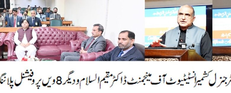 مظفرآباد (پی آئی ڈی)چیف سیکرٹری آزاد حکومت ریاست جموں و کشمیر خوشحال خان نے کہا ہے کہ سرکاری افسران کی پیشہ ورانہ تربیت نہ صرف ان کی انتظامی صلاحیتوں میں اضافہ کرتی ہے بلکہ پالیسی سازی، منصوبہ بندی اور ترقیاتی پروگراموں کے مؤثر نفاذ میں بھی کلیدی کردار ادا کرتی ہے۔ ریاستی اداروں کو درپیش چیلنجز سے مؤثر طور پر نمٹنے کے لیے افسران کو جدید انتظامی تقاضوں، شفاف طرزِ کار، مؤثر گورننس اور بہتر ادارہ جاتی ہم آہنگی کو فروغ دینا ہوگا۔ انہوں نے کہا کہ پیشہ ورانہ مہارت، ذمہ داری کے احساس اور بروقت فیصلہ سازی کے ذریعے ہی اداروں کی کارکردگی کو بہتر اور عوام کو معیاری خدمات فراہم کی جا سکتی ہیں۔ان خیالات کا اظہار انہوں نے کشمیر انسٹیٹیوٹ آف منیجمنٹ کے زیر اہتمام منعقدہ 8ویں پروفیشنل پلاننگ اینڈ منیجمنٹ کورس کی اختتامی تقریب سے خطاب کرتے ہوئے کیا۔ کورس میں مختلف محکموں کے گریڈ 18 کے 39 افسران نے چھ ہفتوں تک پروفیشنل ٹرینرز سے تربیت حاصل کی۔ اس موقع پر چیف سیکرٹری خوشحال خان نے کورس مکمل کرنے والے افسران کو مبارکباد دیتے ہوئے کہا کہ کشمیر انسٹیٹیوٹ آف منیجمنٹ میں منعقد کیے جانے والے کورسز کا نصاب اور گیسٹ اسپیکرز کسی بھی بڑے ادارے سے کم نہیں تھے۔ انہوں نے کہا کہ تربیت کے دوران شرکاء نے 20 سے زائد پالیسی اور تحقیقی دستاویزات تیار کیں جو مستقبل میں پالیسی سازی کے عمل میں معاون ثابت ہوں گی۔انہوں نے مزید کہا کہ اس نوعیت کے کورسز افسران کی پیشہ ورانہ ترقی میں اہم کردار ادا کرتے ہیں۔ کورس کے دوران افسران کو جن ذمہ داریوں اور اصولوں سے آگاہ کیا گیا ہے انہیں چاہیے کہ وہ اپنے اپنے محکموں میں ان پر عملی طور پر عملدرآمد یقینی بنائیں۔ اس طرح کی تربیت سے افسران میں وقت کی پابندی، ڈریس کوڈ کی پاسداری اور ذاتی و پیشہ ورانہ ترقی کا شعور اجاگر ہوتا ہے۔ مختلف محکموں سے تعلق رکھنے والے افسران کے درمیان روابط مضبوط ہوتے ہیں اور انہیں ایک دوسرے کے کام کو سمجھنے کا موقع بھی ملتا ہے۔تقریب میں سیکرٹری سروسز اینڈ جنرل ایڈمنسٹریشن چوہدری محمد امتیاز، سیکرٹری ہائر ایجوکیشن تہذیب النساء، سیکرٹری خوراک سہیل اعظم اور ایڈیشنل سیکرٹری امجد مغل نے بھی شرکت کی۔تقریب کے اختتام پر مہمانِ خصوصی چیف سیکرٹری خوشحال خان نے پروفیشنل پلاننگ اینڈ منیجمنٹ کورس کے 39 شرکاء میں تعریفی اسناد تقسیم کیں۔ اس موقع پر ڈی جی کشمیر انسٹیٹیوٹ آف منیجمنٹ ڈاکٹر مقیم السلام نے چیف سیکرٹری کا شکریہ ادا کرتے ہوئے انہیں یادگاری شیلڈ بھی پیش کی۔