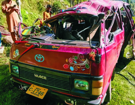 مانسہرہ(نامہ نگار)سرن ویلی مسافروین حادثے کاشکارچادافرادجاں بحق۔18 زخمی۔تفصیلات کے مطابق گزشتہ روزشنکیاری سے جبڑجانے والی مسافرھائی ایس سرن ویلی کے گاوں بھوگڑمنگ کے مقام پرڈرائیورسے بے قابوکرکھیتوں میں جاگری۔حادثے میں گاڑی ڈرائیوراورایک چھوٹے بچے سمیت چارمسافرجاں بحق جبکہ سابق ضلع ناظم اعلی مانسہرہ سردار سیدغلام کے بھائی سمیت 18 مسافرزخمی ھوگئے۔جاں بحق ھونے والوں میں عارف۔مسمات حسن جان، عمران اورایک چھوٹا بچہ شامل ھیں۔جبکہ زخمیوں میں نوشین۔ سمیر، پروین۔افتاب، نزیر۔رضیہ،شوکت،سعید احمد، نور نبی، زلیخہ بی بی زوجہ بنارس جبر گلی زبیر ولد غلام حسین پروین بی بی زوجہ غلام حسن صبا ولد نصیر احمد محمد نظیر قادر کومل آفتاب اکبر۔سفیان۔عبدالقادر۔فاروق محمد فاروق شامل ھیں۔حادثہ کی اطلاع ملتے ہی ریسکیو اور شنکیاری پولیس موقع پر پہنچ گءاور مقامی افراد کے ہمراہ زخمیوں کو شنکیاری اور مانسہرہ کے ہسپتالوں میں منتقل کیا۔