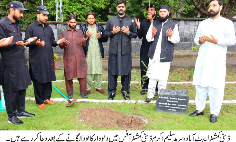 ایبٹ آباد (محاسب نیوز)حکومت خیبر پختونخواہ گڈ گورننس روڈ میپ درخت، زندگی اور ماحولیات تحفظ ڈپٹی کمشنر ایبٹ آباد سرمد سلیم اکرم نے ڈپٹی کمشنر آفس میں دیودار کا پودا لگایا اور ضلع میں جنگلات کے تحفظ اور ماحولیاتی توازن برقرار رکھنے کے عزم کا اظہار کیا۔اس موقع پر انہوں نے ڈی ایف او گلیز ڈویژن تیمور خان، ایس ڈی او عثمان خان اور فارسٹ ٹیم سے ملاقات کی۔ڈپٹی کمشنر ایبٹ آباد نے جنگلات کی غیر قانونی کٹائی کے خلاف سخت کارروائی کی ہدایت دیتے ہوئے کہا کہ جنگلات ہماری متاعِ قدرت ہیں، ان کی حفاظت ہم سب کی ذمہ داری ہے۔ضلعی انتظامیہ جنگلات کے تحفظ، شجرکاری کے فروغ اور قدرتی ماحول کو محفوظ بنانے کے لیے عملی اقدامات جاری رکھے ہوئے ہے۔