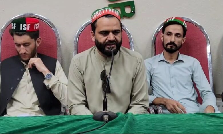 ایبٹ آباد (نمائندہ خصوصی)انصاف اسٹوڈنٹس فیڈریشن (آئی ایس ایف) ہزارہ ریجن نے خیبرپختونخوا کے نئے وزیرِ اعلیٰ کے لیے بانیِ چیئرمین عمران خان کے فیصلے کی بھرپور حمایت کرتے ہوئے کہا ہے کہ اگر کسی نے سہیل آفریدی کی نامزدگی میں رکاوٹ ڈالی تو پورے صوبے کے نوجوان پر امن احتجاج سے گریز نہیں کریں گے۔ایبٹ آباد پریس کلب میں پریس کانفرنس کے دوران ریجنل صدر رمیز خان سواتی کی ہدایت پر مسلم لیڈر اور ضلعی عہدیداران — عبدالرحمن غازی (صدر کولائی پالس)، عثمان نواز (صدر تحصیل ایبٹ آباد)، یحیٰ (ترجمان ہزارہ ریجن)، عثمان رویز (صدر لوئر تناول)، معاذ شاہ (صدر یونیورسٹی آف ہری پور)، ملک فہد (صدر تحصیل بٹیڑہ) اور دیگر نے بڑی تعداد میں نوجوانوں کے ہمراہ کہا کہ وہ عمران خان کے ساتھ سیسہ پلائی دیوار کی مانند کھڑے ہیں اور سہیل آفریدی کی نامزدگی کارکنان کی فتح ہے۔پریس کانفرنس میں عبدالرحمن غازی اور عثمان نواز نے وفاقی وزراء کی جانب سے سہیل آفریدی پر لگائے گئے الزامات کو مسترد کرتے ہوئے کہا کہ سہیل آفریدی پہلے بھی صوبائی وزارت انجام دے چکے ہیں اور اب اچانک ان پر دہشت گردی سے جوڑنے کے الزامات سمجھ سے بالا ہیں۔ ان کا کہنا تھا، "جب عمران خان نے مڈل کلاس ورکر کو وزیرِ اعلیٰ بنانے کا فیصلہ کیا تو کچھ لوگوں کو تکلیف ہو رہی ہے۔ سہیل آفریدی عمران خان کے نظریے کے لیے ڈٹ کر کھڑے ہیں، وہ سچا اور ایماندار شخص ہیں جو کسی کے سامنے نہیں جھکیں گے۔”آئی ایس ایف رہنماؤں نے کہا کہ دیگر جماعتوں میں مورثی سیاست کا رواج ہے جو باپ کے بعد بیٹے کو آگے لاتے ہیں، جبکہ عمران خان نے محنت کو ہی اہمیت دی۔ اس موقع پر ریجنل صد رمیز خان سواتی کی قیادت میں کارکنان نے اس عزم کا اعادہ کیا کہ وہ قائدِ تحریک کے فیصلے کے ساتھ ہر صورت کھڑے رہیں گے۔پریس کانفرنس میں اُنھوں نے رجیم چینج کے الزام پر بھی بات کی اور کہا کہ تبدیلی کے نام پر ملک میں دہشت گردی پھیلائی گئی۔ انہوں نے رانا ثناءاللہ کے بیان کی طرف اشارہ کرتے ہوئے کہا کہ "کچھ لوگ اچھے طالبان لانے کی بات کرتے رہتے ہیں” اور استدلال کیا کہ رکاوٹ ڈالنے والوں کو دراصل ڈالر کی کمائی ختم ہونے کا ڈر ہے۔ اس لیے وہ اس خلاف ورزی کو ناکام بنانے کے لیے پر امن احتجاج اور ریلیاں نکالیں گے۔آئی ایس ایف کے قائدین نے زور دے کر کہا کہ "جمہوریت کا جنازہ نہ نکالا جائے اور نہ خیبرپختونخوا کے عوام کے ساتھ مذاق کیا جائے”۔ پریس کلب کے باہر ریلی بھی نکالی گئی اور شرکاء نے سہیل آفریدی کو وزیرِ اعلیٰ نامزد کرنے کے فیصلے کی حمایت کرتے ہوئے عمران خان کی فوری رہائی کا بھی مطالبہ کیا۔پریس کانفرنس کے شرکاء نے اعلان کیا کہ اگر سہیل آفریدی کی نامزدگی میں رکاوٹ پیدا کی گئی تو پورے صوبے میں منظم اور پر امن احتجاج کیے جائیں گے تاکہ عوامی فیصلے کا دفاع کیا جا سکے۔