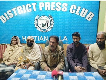 ہٹیاں بالا (اسلم مرزا)ہٹیاں بالا کے نواحی گاؤں کونا میں سترہ اور اٹھارہ سالہ دو کم عمر نوجوانوں کو اغواء کے بعد وحشیانہ تشدد، گلے میں جوتوں کے ہار ڈال کر گاؤں میں گھمانے اور جبراً تحریر لکھوانے پر متاثرہ خاندان انصاف کے لیے ڈسٹرکٹ پریس کلب ہٹیاں بالا پہنچ گیا۔ راجہ قیوم شوکت، راجہ خیام، محمد افضل، گلشن بی بی اور میمونہ بی بی سمیت متاثرہ خاندان کے دیگر افراد نے ڈسٹرکٹ پریس کلب ہٹیاں بالا میں پریس کانفرنس میں بتایا کہ ہمارے بچوں کو رات کی تاریکی میں زبردستی گھروں سے اٹھایا گیا اور بدترین ظلم کا نشانہ بنایا گیا۔ انہوں نے کہا کہ مدثر ولد بشیر کھوکھر، منیب ولد خلیل الرحمن، امتیاز، صدیق، عارف پسران متولی کھوکھر اور محمد صغیر ولد محمد صدیق ساکنان کونا نے ہمارے بچوں انس افضل اور مظہر محمود کو اغواء کر کے مدثر بشیر کے گھر منتقل کیا جہاں ان پر رسیوں سے باندھ کر بیدردی سے تشدد کیا گیا۔اہل خانہ کے مطابق ملزمان نے نہ صرف دونوں نوجوانوں کو وحشیانہ تشدد کا نشانہ بنایا بلکہ ان کے چہرے کالے کیے، سر کے بال منڈھوائے، گلے میں جوتوں کے ہار ڈال کر گاؤں میں تماشہ بنایا اور بارہ گھنٹے تک حبس بے جا میں رکھا۔ دورانِ تشدد ملزمان گالیاں دیتے اور ان کی تذلیل کرتے رہے۔ متاثرین کے جسم کے نازک اعضا پر تشدد کے واضح نشانات موجود ہیں، دونوں شدید زخمی حالت میں اسپتال میں زیر علاج ہیں۔ لیکن ہسپتال میں موجود اہلکار حق نواز ہمارے زیر علاج بچوں کی رپورٹیں تبدیل کررہا ہے اور علاج معالجے میں رکاوٹ بن رہا ہے۔متاثرہ خاندان نے انکشاف کیا کہ مدثر کھوکھر اور یاسر کھوکھر نے زبردستی ہم سے جھوٹی تحریر پر دستخط کروائے کہ ہمارے بچے چوری میں ملوث ہیں اور ہم انہیں گاؤں سے نکال دیں گے۔ دھمکیاں دی گئیں کہ اگر پولیس یا میڈیا کو اطلاع دی تو نتائج سنگین ہوں گے۔ متاثرہ ماں نے روتے ہوئے کہا:“ہمارے بچوں کے چہرے کالا کیے گئے، ان کے جسم جلائے گئے، ہم انصاف کے لیے دربدر ہیں، حکام ویڈیوز دیکھیں اور بتائیں یہ کہاں کا انصاف ہے؟”متاثرہ خاندان نے وزیر اعظم آزاد کشمیر، چیف سیکرٹری، انسپکٹر جنرل پولیس آزاد کشمیر اور ڈی آئی جی مظفرآباد سے اپیل کی ہے کہ وہ واقعہ کا فوری نوٹس لے کر ملزمان کو قانون کے کٹہرے میں لائیں۔ ان کا کہنا تھا کہ ہم غریب لوگ ہیں، ملزمان بااثر ہیں، تمام ملزمان کو گرفتار کروایا جائے اور ہمیں انصاف فراہم کیا جائے