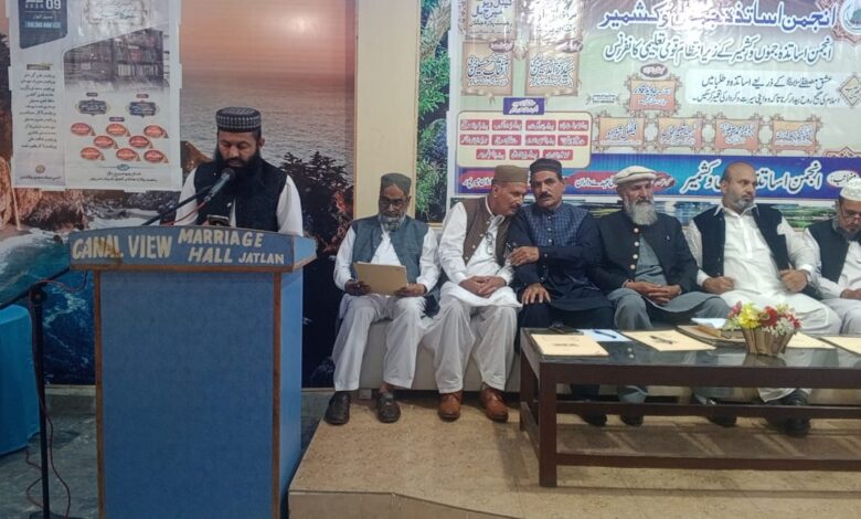 کھڑی شریف سے (نمائدہ خصوصی راجہ افسر شاہین)انجمن اساتذہ جموں وکشمیر کے زیر انتظام قومی تعلیمی کانفرنس کنال ویو میرج ہال رحمت پلازہ جاتلاں کھڑی شریف ضلع میرپور آزاد کشمیر منعقد ہوئی۔ جس کی صدارت پروفیسر آفتاب حسین بزمی مرکزی صدر انجمن اساتذہ جموں وکشمیر نے فرمائی۔ پروفیسر حافظ عبد الرحمان صاحب نے سٹیج سیکرٹری کے فرائض سر انجام دئیے۔تقریب کا باقاعدہ آغاز قاری محمد اصغر صاحب نے تلاوت کلام پاک سے کیا گیا۔ ہدیہ نعت رسول مقبول صلی اللّٰہ علیہ وآلہ وسلّم کا نظرانہ پروفیسر نوید اقبال صاحب نے پیش کیا۔اس تقریب کے مہمان خصوصی محترم سید زاہد حسین نعیمی صاحب بانی انجمن اساتذہ جموں وکشمیر تھے۔ مہمانان اعزاز عزت مآب محترم جاوید قادر سابق امیدوار اسمبلی،محترم سید تخلیق الزمان شاہ صاحب ڈویژنل ڈائریکٹر سکولز میرپور، پروفیسر محمد صغیر آسی سابق پرنسپل،راجہ شبیر ایڈووکیٹ سپریم کورٹ،فیصل شہزاد ریجنل ڈائریکٹر علامہ اقبال اوپن یونیورسٹی۔پروفیسر معروف چوہان،پروفیسر خان گل خان،میر محمد الیاس شاکر،پروفیسر اورنگزیب، پروفیسر جمروز صدیقی،علامہ طفیل کاظمی، پروفیسر ڈاکٹر عبد القدوس،حافظ شفیع صدیقی،پروفیسر لیاقت علی، محمد صغیر قادری، پروفیسر ڈاکٹر ظہیر احمد، محترم لیاقت علی جوشی، پروفیسر محمد امین،پروفیسرمنیر احمد، پروفیسر زوہیب محمود، پروفیسر نوید احمد، پروفیسر عبد الرحمان،ظفر خان خانپوری،پروفیسر محمد ذوالقرنین انقلابی،عابد حسین (ڈائریکٹر سپورٹس مسٹ) پروفیسر محمد علی،ماسٹر مظہر اقبال،قاری محمد اصغر، پروفیسر محمود حسین، مفتی عطا المصطفیٰ، فیضان حسین (سئنیر صدر معلم) عمر نزیر (صدر معلم) محمد اسحاق چوہان نے شرکت فرمائی۔جاتلاں پریس کلب کے صدر چوہدری محمد بشارت صاحب،نائب صدر راجہ عامر شہزاد، سئنیر نائب صدر ڈاکٹر طارق محمود، سیکرٹری اطلاعات چوہدری فضل قیوم، جنرل ایڈیشنل سیکرٹری حاجی آصف محمود،چوہدری عابد حسین، جنرل سیکرٹری چوہدری غلام قادر، چیئرمین سرفراز ویلفیئر ٹرسٹ چوہدری محمد سرفراز صاحب، امتیاز احمد،حاجی محمد اقبال ریٹائرڈ پولیس آفیسر،ڈاکٹر ممتاز حسین پیرزادہ،راجہ ساجد معروف،ماسٹر تجمل فدا اور سیاسی وسماجی،علمی ادبی، صحافت سے وابستہ شخصیات نے بھی شرکت کی۔اس کانفرنس کا نصب العین عشق مصطفیٰ صلی اللّٰہ علیہ وآلہ وسلّم کے ذریعے اساتذہ اور طلبہ میں اسلام کی صحیح روح بیدار کرنا تاکہ وہ اپنی سیرت وکردار کی تعمیر کر سکیں۔ ڈاکٹرز، پروفیسرز، وکلاء، معلمین نے اپنے مکالے پیش کیے۔اور سیرت النبی صلی اللّٰہ علیہ وآلہ وسلّم کے موضوع پر روشنی ڈالی۔سابق صدور انجمن اساتذہ جموں وکشمیر کو ان کی اعلیٰ تعلیمی خدمات کے اعتراف میں شیلڈز پیش کی گئی۔تعلیم اور صحافت سے وابستہ شخصیات کو بھی اعزازی سند دی گئی۔درود و سلام پیش کیا گیا اور دعا فرمائی گی اور آخر میں مہمانوں کو کھانا کھلایا گیا۔ مرکزی صدر انجمن اساتذہ جموں وکشمیر محترم پروفیسر آفتاب حسین بزمی صاحب نے نزدیک و دور دراز علاقوں سے آنے والے معزز مہمانوں کا شکریہ ادا کیا۔