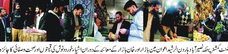 پٹہکہ(نمائندہ محاسب) تحصیل انتظامیہ عوام کو سستی اور معیاری اشیاء خوردونوش کی فراہمی یقینی بنانے کے لئے متحرک،اسسٹنٹ کمشنر پہٹکہ نصیر آباد ہارون الرشید اعوان نے ہمراہ پولیس گزشتہ روز مین بازار پٹہکہ اور خان بازار کا معائنہ کیا اور پرائس کنٹرول سرگرمی کے دوران ریٹ لسٹ،صفائی ستھرائی،ممنوعہ آئل اور گھی کی برانڈز کے خلاف کارروائی کی گئی۔دوران پڑتال مہنگی باقر خانی فروخت کرنے والوں کو جرمانے کئے گئے۔علاوہ ازیں خان بازار میں تجاوزات کو موقع سے ہٹایا گیا اور خلاف ورزی کرنے والوں کو جرمانے کئے۔انتظامیہ نے مین بازار پٹہکہ میں طے شدہ پالیسی کے مغائر پارکنگ کرنے والے ٹرانسپورٹرز کے خلاف آئنی ہاتھوں سے نمٹنے کا عندیہ دیا۔تفصیلات کے مطابق ڈپٹی کمشنر مظفرآباد کی ہدایت پر اے سی پٹہکہ ہارون الرشید اعوان نے ہمراہ پولیس اور عملہ فیلڈ مین بازار پٹہکہ اور خان بازار تک دکانوں کا تفصیلی معائنہ کیا اور تاجروں کو بھاری جرمانے عائد کئے۔ اس موقع پر غیر معیاری اشیاء خوردونوش کو تلف، اور تجاوزات کا خاتمہ کردیا ہارون الرشید اعوان کا کہنا تھا کہ اشیاء خوردونوش کی فراہمی یقینی بنانے کے لیے انتظامیہ دن رات کوشاں ہے۔عوام کو سستی اور معیاری اشیاء خوردونوش کی فراہمی یقینی بنانے کے لئے بازار کا معائنہ باقاعدہ کیا جارہا ہے تاکہ عوام کو ریلیف مل سکے۔پرائس کنٹرول کمیٹی کی جانب سے جاری کردہ ریٹ لسٹ پر عمل درآمد نہ کرنے والے تاجروں کو کسی صورت معاف نہیں کیا جائے گا عوام کی تحریری شکایات کا ازالہ کیا جائے گا۔عوام انتظامیہ کے ساتھ تعاون کریں۔ہم سب کو مل کر عوام کے مسائل کو فوری حل کرنے کے لئے اور بہتری کے لئے کردار ادا کرنا ہوگا۔