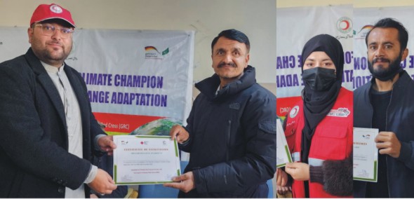 گلگت(پ،ر)پاکستان ریڈ کریسنٹ سوسائٹی (PRCS) گلگت بلتستان برانچ نے جرمن ریڈ کراس (GRC) اور بی ایم زیڈ BMZ کے تعاون سے دو روزہ کلائمیٹ چینج ایڈاپٹیشن ٹریننگ سیشن کامیابی سے منعقد کیا۔ سیشن ڈیپارٹمنٹ آف انوائرنمنٹل سائنسز، قراقرم انٹرنیشنل یونیورسٹی (KIU) کے اشتراک سے منعقد ہوا۔پروگرام کا آغاز ڈاکٹر ہئبت علی چیئرمین ڈیپارٹمنٹ آف انوائرنمنٹل سائنسز کے آئی یو نے کیا جس کے بعد مسٹر معین الدین (سینئر رضاکار PRCS GB اور وزٹنگ فیکلٹی KIU) نے ریڈ کراس ریڈ کریسنٹ موومنٹ کی تاریخ پر سیر حاصل لیکچر دیا۔ اسسٹنٹ ڈائریکٹر پی آر سی ایس جنید عباس نے موسمیاتی تبدیلی اور اس کے مقامی، قومی اور علاقائی اثرات پر جامع اور معلوماتی سیشن دیا۔ سینئر رضاکار تطہیر کوثر نے شرکاء کو مختلف گروپ سرگرمیوں کے ذریعے فعال طور پر شامل کیا۔ دوسرے روز اقتدار حسین نے موسمیاتی تبدیلی کے گلیشیئرز پر مقامی اور بین الاقوامی سطح پر اثرات سے متعلق مفصل سیشن پیش کیا۔ اس کے بعد ڈاکٹر پروفیسر شیر ولی، چیئرمین ڈیپارٹمنٹ آف پلانٹ سائنسز نے موسمیاتی تبدیلی کے حیاتیاتی تنوع پر اثرات کے موضوع پر بھرپور لیکچر دیا۔ شرکاء نے دونوں دنوں کے دوران اپنے گروپ پریزنٹیشنز بھی پیش کیں، جن میں موسمیاتی لچک اور ممکنہ حلوں سے متعلق اہم نکات شامل تھے۔ٹریننگ کا اختتام ڈاکٹر سجاد علی (اکیڈمک ڈائریکٹر KIU) کی اختتامی گفتگو سے ہوا، جنہوں نے PRCS GB کی کاوشوں کو سراہا اور تمام فیسلیٹیٹرز کا شکریہ ادا کیا۔ آخر میں شرکاء اور تربیت کاروں میں اسناد تقسیم کی گئیں۔