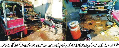مظفرآباد (خبر نگار خصوصی ) مرغ مارکیٹ مظفرآباد میں گاڑیوں کی غیر قانونی مستقل پارکنگ، ریڑھیوں تھڑوں کی بھرمار گاڑیوں کی کراسنگ کا مسئلہ شدت اختیار کر گیا گاڑیوں کی کراسنگ پر ہفتہ کے روز مرغ مارکیٹ میں دوگروہوں میں تصادم 3 افراد زخمی۔ پلاؤ فروخت کرنے والے ریڑھی بان ماموں نصیر کی ریڑھی سے پلاؤ اور موٹھی کی دال گرا دی گئی جس سے ان کا مالی نقصان ہوگیا تاجروں کا شدید رد عمل سٹی تھانہ پولیس کو اطلاع ملنے پر موقع پر پہنچ گئی۔ مرغ مارکیٹ میں مرغ فروشوں کی گاڑیاں سارا دن کھڑی رہتی ہیں ساتھ ہی ریڑھیاں موٹر سائیکل لگا دیے جاتے ہیں۔ اس مارکیٹ سے گاڑی کا گزرنا اور کراسنگ ناممکن ہو جاتا ہے مارکیٹ میں آمدورفت زیادہ ہوتی ہے شہریوں کو مشکلات کا سامنا کرنا پڑتا ہے۔ شہری سیاسی سماجی حلقوں سے مرغ مارکیٹ میں گاڑیوں کی پارکنگ پر پابندی لگانے کا مطالبہ کیا ہے۔
