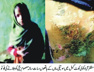 گہل کومی کوٹ‘سوتیلی ماں کا معصوم بچی پر بدترین تشدد‘ اعضاء جلاڈالے