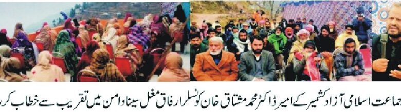 جہلم ویلی(محاسب نیوز)جماعت اسلامی آزاد کشمیرگلگت بلتستان کے امیرڈاکٹر محمد مشتاق خان نے کہاکہ وزیر اعظم چیف الیکشن کمشنر کاتقررکرکے شفاف انتخابات کو یقینی بنائیں،آزاد کشمیراور گلگت بلتستان کی حکومتیں برف باری اور چپورسن گلگت بلتستان میں زلزلہ سے متاثرین کی فوری امداد کریں،جماعت اسلامی ریاست کے آزاد خطوں کو خود کفیل بنا کر عام شہری کے معیار زندگی کو بہتر بنائے گی،رشوت اور سفارش کو کلچرختم کری ں گے،میرٹپر ملازمتیں دیں گے،یکساں نصاب تعلیم لاج کریں گے جہاں وزیراعظم،صدر اور وزائے کے بیٹے تعلیم حاصل کریں گے وہیں غرباء کے بیٹے بھی تعلیم حاصل کریں گے مراعات اور پروٹوکول کو ختم کریں گے،جماعت اسلامی ریاست کے آزاد خطوں کو اسلامی فلاحی ریاست بنائے گی،جماعت اسلامی میں نئے شامل ہونے والوں کو جائز مقام دیں گے،ان خیالات کااظہارانھوں نے جہلم ویلی حلقہ 6یونین کونسل سینا دامن میں تقریب سے خطاب کرتے ہوئے کیا اس موقع پر کونسلر ارفاق مغل،غزالہ اشرف راجہ نزاکت اور دیگر قائدین نے خطاب کیا،اس موقع پر درجنوں مرد وخواتین نے جماعت اسلامی میں شامل ہونے کااعلان کیا ور ڈاکٹر محمد مشتاق خان نے ممبر شپ کا حلف لیا،تقریب سے خطاب کرتے ہوئے ڈاکٹر محمد مشاق خان نے کہاجو جو لوگ دیگرجماعتیں چھوڑ کر جماعت اسلامی شامل ہورہے ہیں ان کو جائز مقام دیں گے ان کے کام کاج جماعت اسلامی کرے گی،جماعت اسلامی اپنے ساتھ چلنے والوں کا خیال رکھے گی اور اس سے پہلے بھی رکھا ہے،حکومت میں نہ ہوتے ہوئے بھی جماعت اسلامی نے عوام کی خدمت کی ہے اور کررہی ہے۔